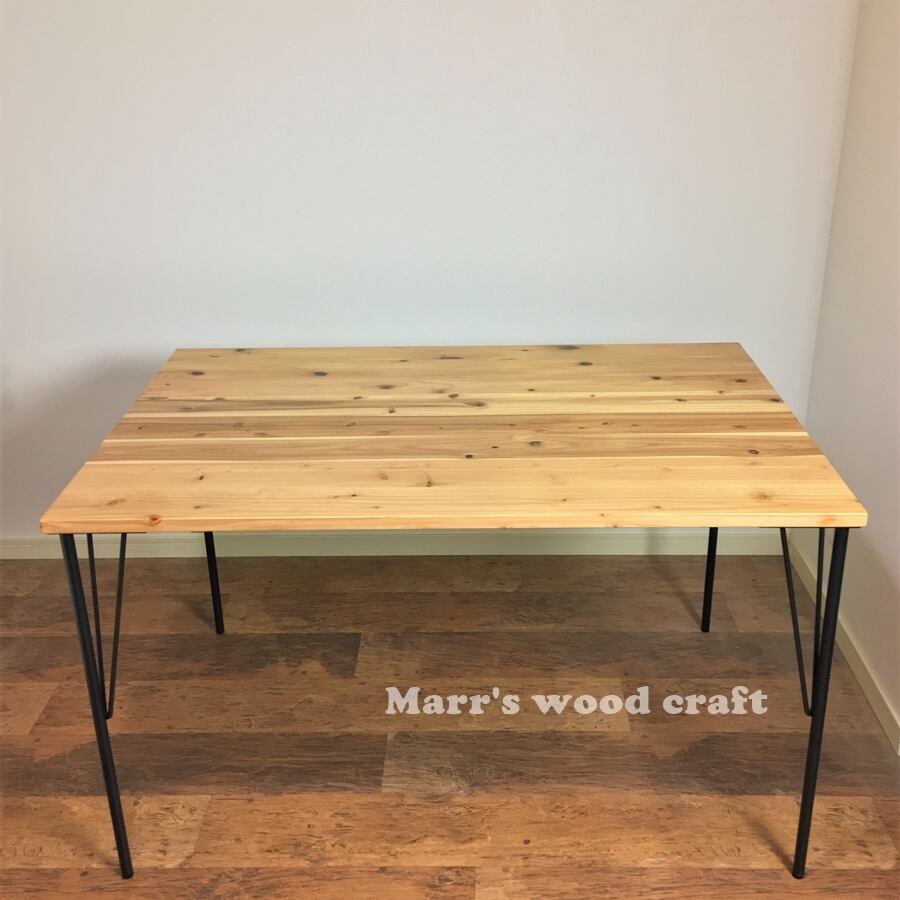国産杉の無垢材ダイニングテーブル 80x150cm 4人用 ウレタンクリアー塗装 アイアン脚【オーダー可能】