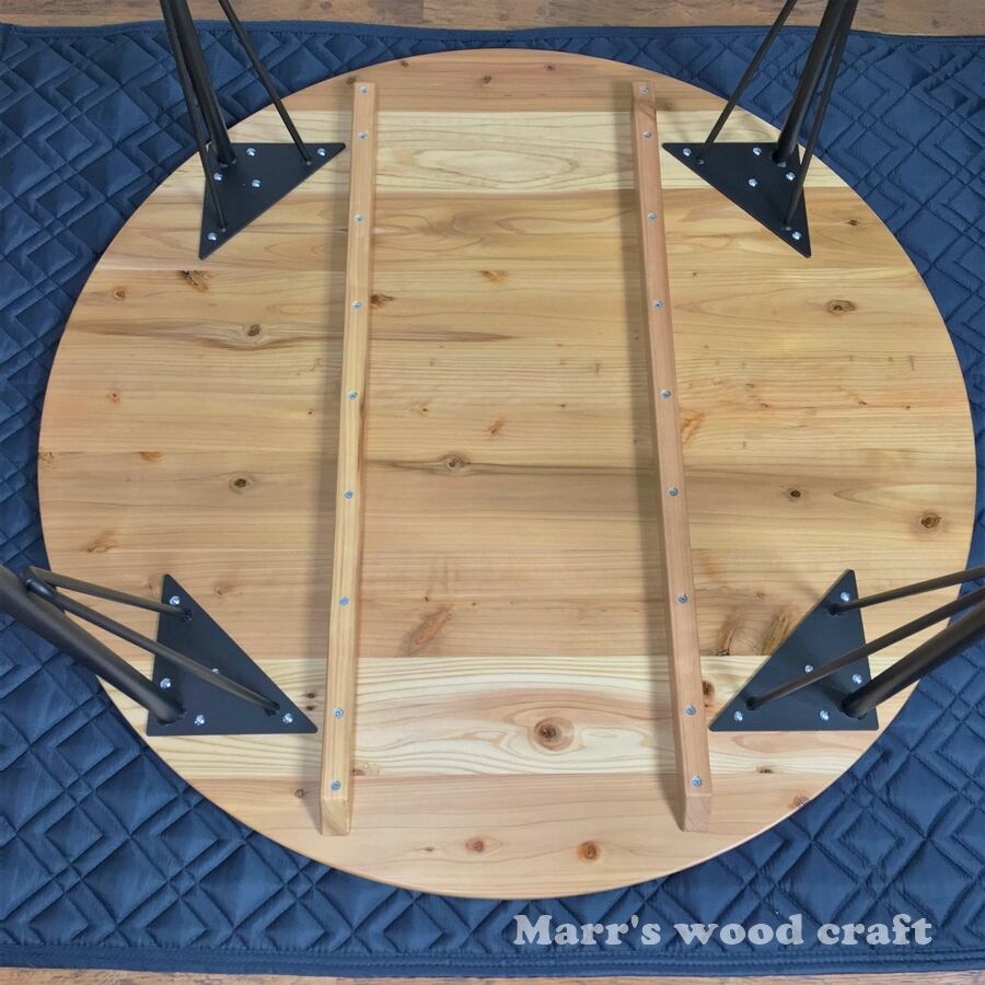 国産杉の無垢材ダイニングテーブル 円形 120cm 4人用 ウレタンクリアー塗装 アイアン脚 丸型 円卓【オーダー可能】